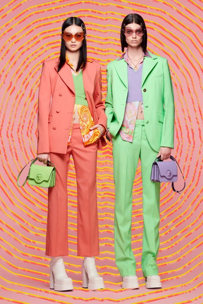 Obviously Donatella Versacce has had enough of loungewear ! This collection is an ode to freedom and optimism with bright 60’s Pop colors and lines, and a touch of 90’s trends with the tweed ensembles. It’s all about having fun and going out in the world all over again !